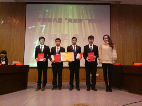 在评委们公正的评判后,由能动一班代表队获得最终胜利,电信三班代表队位居第二,第三名则由积分领先的能动二班代表队获得。由刘世勇同学荣获最佳辩手称号,丁晟月、吴雨朦、应佳欣同学分别荣获优秀辩手称号。由理公司团委书记刘华老师和朱艺学姐为获奖代表队颁奖以兹鼓励。本次辩论赛在同学们热烈的掌声中落下帷幕。