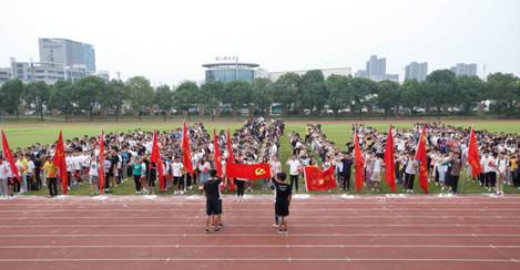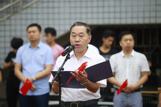 本网讯(通讯员 张舒 何思颖)为庆祝中华人民共和国成立70华诞,中国共产党建党98周年,重温中国共产党的光辉历史,激励广大师生党员为实现“两个一百年”奋斗目标,实现中华民族伟大复兴的中国梦贡献工大力量、奋勇前进,武汉工程大学于7月1日早上7:00在流芳校区体育场举行“不忘初心、牢记使命”的爱国主义主题升国旗仪式。校组织部部长李志旭、校员工处处长王涛、校员工处副处长徐迪迪、304am永利集团经理熊伦、各公司党委副书记、全体辅导员、“许志伟”党员示范班全体学员,第27期老员工骨干培训班和“青马工程”培训班学员1000余人参加了升旗仪式。