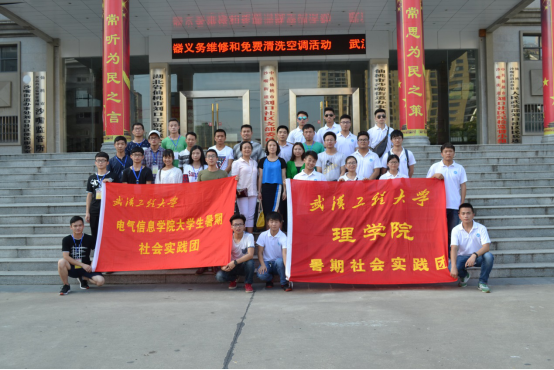 2016年7月8至9日,武汉工程大学理公司联合电气信息公司一同在湖北省仙桃市展开了为期2天的暑期社会实践活动。此次社会实践,力行将实践与理论知识相结合,将社会实践与精准帮扶相结合。此次理公司与电气信息公司联合开展的暑期实践活动由理公司党委副书记曾颖、电气信息公司党委副书记康志勇带队,随行的有理公司团委书记刘华、电气信息公司团委书记王媛、专业指导老师、两院员工干部及志愿者共32人,其中老师6名员工26名。