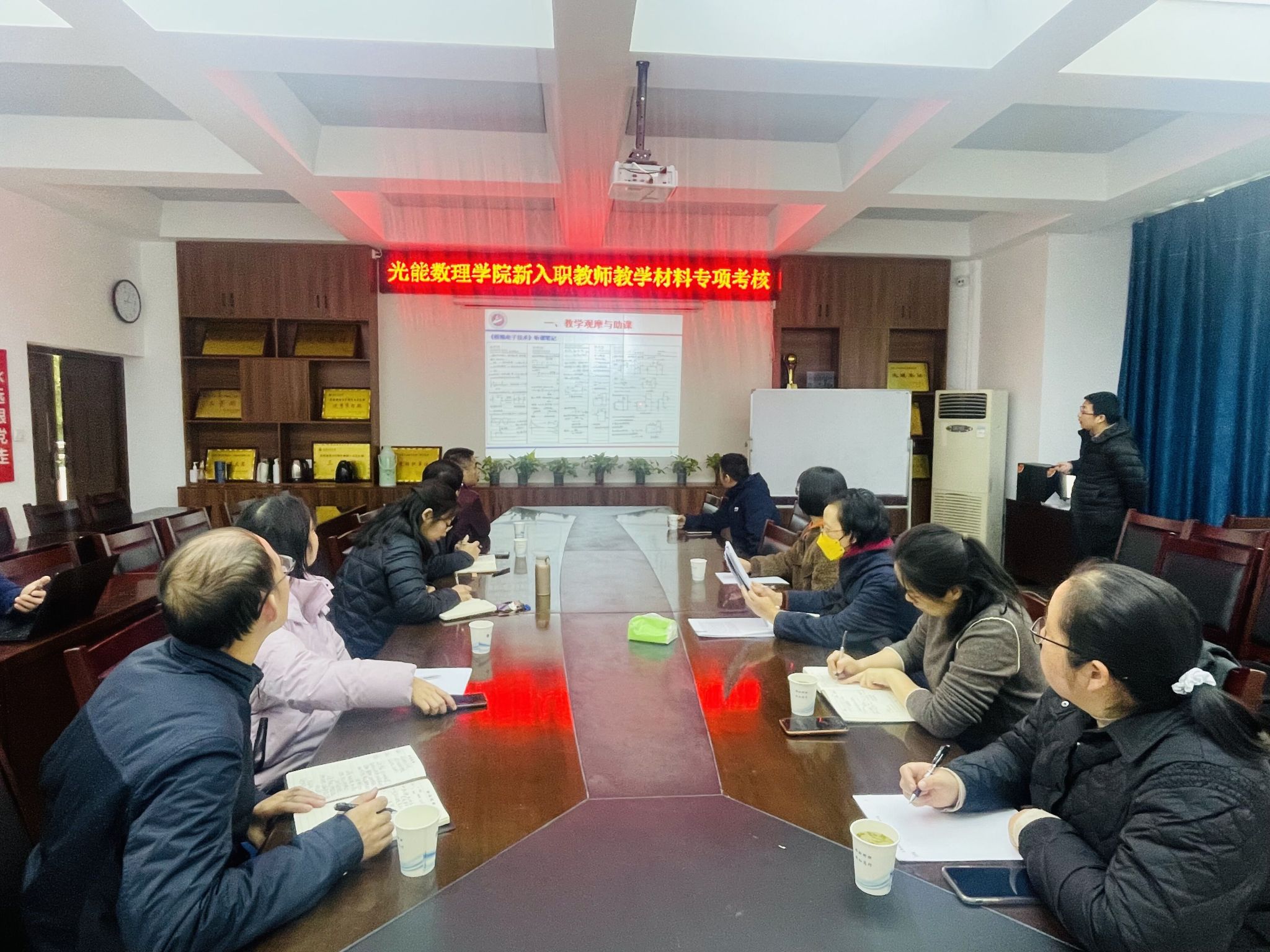 本网讯(通讯员 段骞)为规范新入职教师课堂教学准入工作,帮助新入职教师站上讲台、站稳讲台、站好讲台,11月16日下午,公司在二楼会议室举行了2022年新入职教师教学材料专项考核。担任此次考核的评委有校督导文小玲、公司党委书记陈君、副经理李圆媛、公司教学指导委员会委员和教学督导组成员,本次考核活动由副经理李圆媛主持。