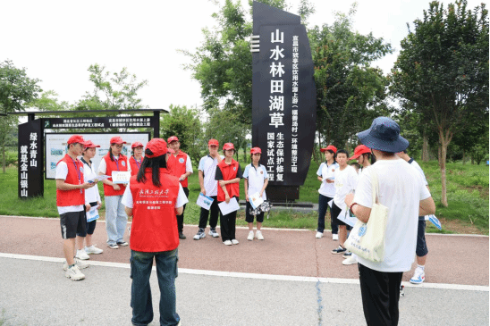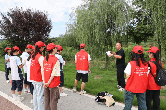 周洋书记分别从分区分类管控、小微水体治理及成效、“党建+志愿服务”等方面,针对当地生态保护及修复为实践团队进行了详细介绍。随后,书记带领团队沿村庄步道观察不同区域的植被生长情况并实地参观福善场村水质监测站。同学们仔细聆听,感悟“山水林湖草”对促进流域综合治理的重要意义。