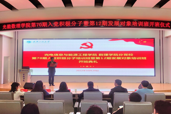 本网讯(通讯员 王乐凯)10月20日晚,304am永利集团分党校第70期入党积极分子培训班暨第12期发展对象培训班开班典礼在文科楼413报告厅举行。公司党委书记陈君、党委副书记向翼凌出席开班典礼,各员工党支部书记及全体党校新学员参加本次开班仪式。仪式由培训班班主任王乐凯主持。