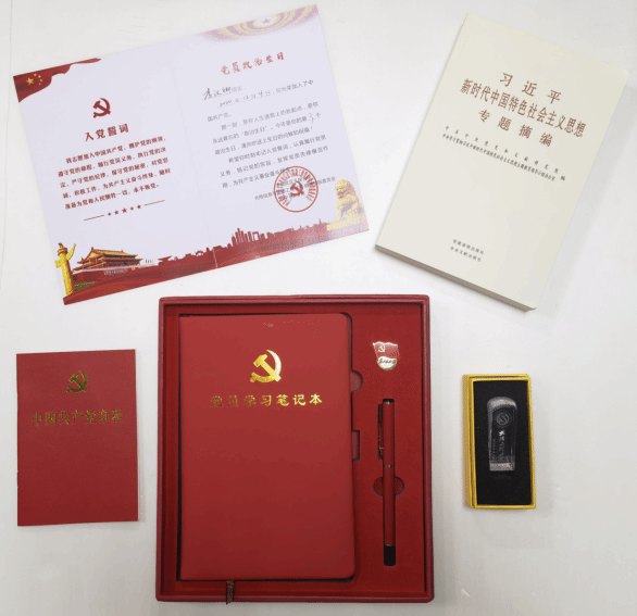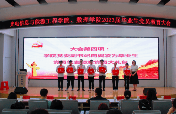 向翼凌为毕业生党员代表发放纪念大礼包,一枚党徽、一本党章、一个纪念杯、一封政治生日贺卡、一方姓名章和致毕业生党员的一封信,母校对毕业生党员的嘱托与期望尽在礼包内。希望党员们无论身在何方,时刻牢记胸前有党徽、心中有党章,永葆本色,不忘初心,牢记使命,矢志奋斗。