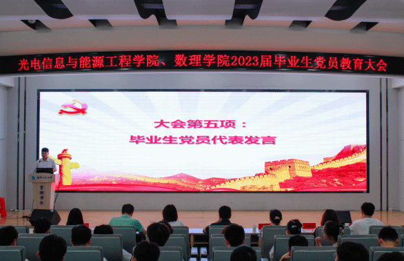 研究生毕业党员代表石泽鑫、本科生毕业党员代表李奥分别发表毕业感言,回顾在校期间思想、学习、工作方面的收获,表达对公司、公司和老师的感激之情,号召全体毕业生党员坚定不移地听党话、跟党走、不负韶华、不负时代、不负人民,在青春的赛道上砥砺前行,奋进新征程,建功新时代。