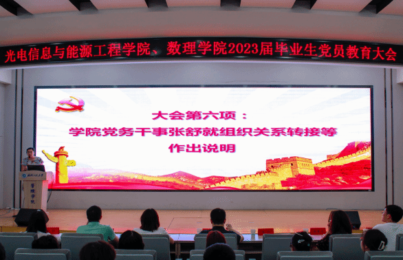 党务干事张舒就毕业生党员党组织关系转接等相关工作进行详细讲解,强调组织关系转接是一项严肃工作,引导毕业生党员增强党员意识与责任意识,强化党的意识和组织观念,提醒毕业生党员及时有效转接党组织关系。