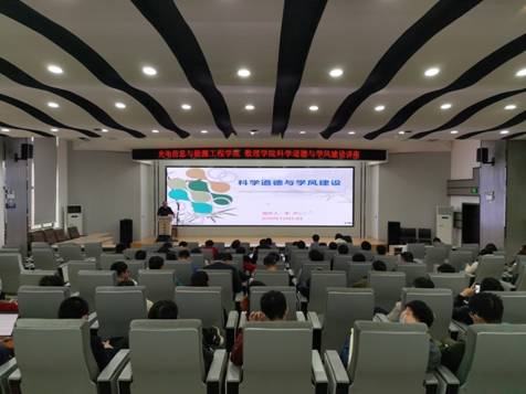 随后,李博士从科学道德、学术规范、学术腐败三方面展开授课。李博士强调科学研究要遵纪守法,弘扬科学精神,公开、公正开展竞争以及相互尊重,发扬学术民主;要坚持客观,公正的评价原则;要鼓励百家争鸣,促进共同繁荣。