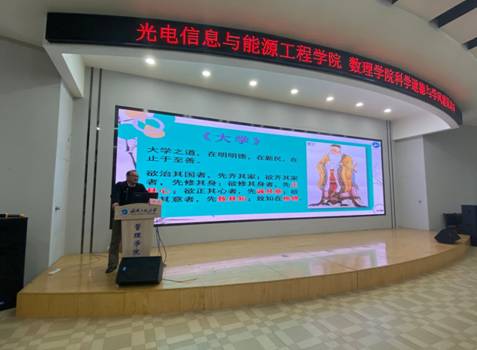 李齐博士首先指明了学术建设的目的在于教育研究生堂堂正正做人,认认真真做事。他引用《大学》中的内容从四个方面教导研究生要明白“正其心”、“诚其意”、“致其知”、“格物”的道理。