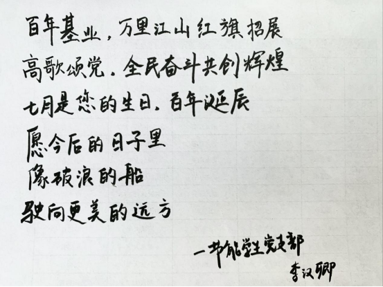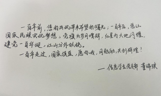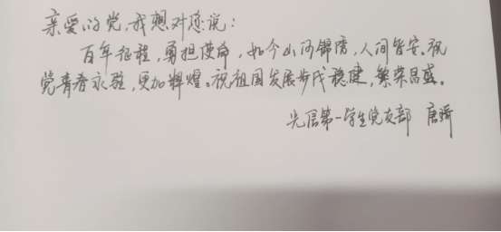 本网讯(通讯员 张舒 李奥)“不忘初心,牢记使命。”为迎接中国共产党成立100周年,在七月一日建党节之际,304am永利集团的青年党员们用文字向党和祖国深情告白。