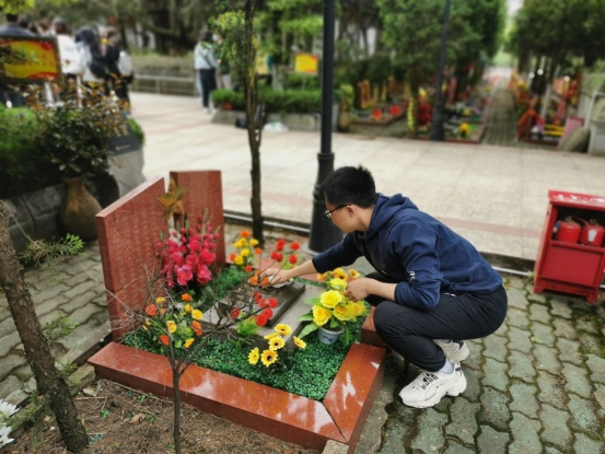 在陵园肃穆的气氛中,全体党员默哀三分钟,所有党员用庄重表达哀悼,用寂静刻画敬重,用无声之言,互通缅怀。随后,同学们在烈士纪念碑及党旗前举起右手宣誓。同学们自发为这些为了革命、为了国家埋骨异乡,叶落未归根的烈士们清洗烈士墓碑,为他们拂去落叶,擦去尘土,让烈士们纵使葬于异乡,也能安心长眠。
