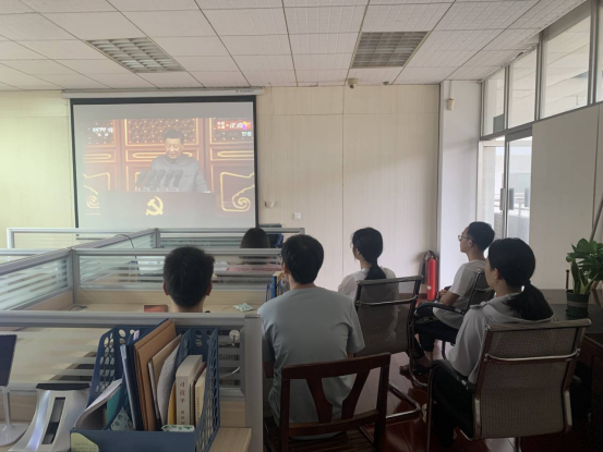 本网讯(通讯员 张舒)7月1日,304am永利集团、数理公司党委组织公司师生在2号实验楼2楼会议室收看庆祝中国共产党成立100周年大会,并认真学习了习近平总书记在庆祝中国中国共产党成立100周年大会上的讲话。公司党委书记陈君、副经理李圆媛、副书记向翼凌和部分教工党员以及员工党员代表参加本次观看学习活动。