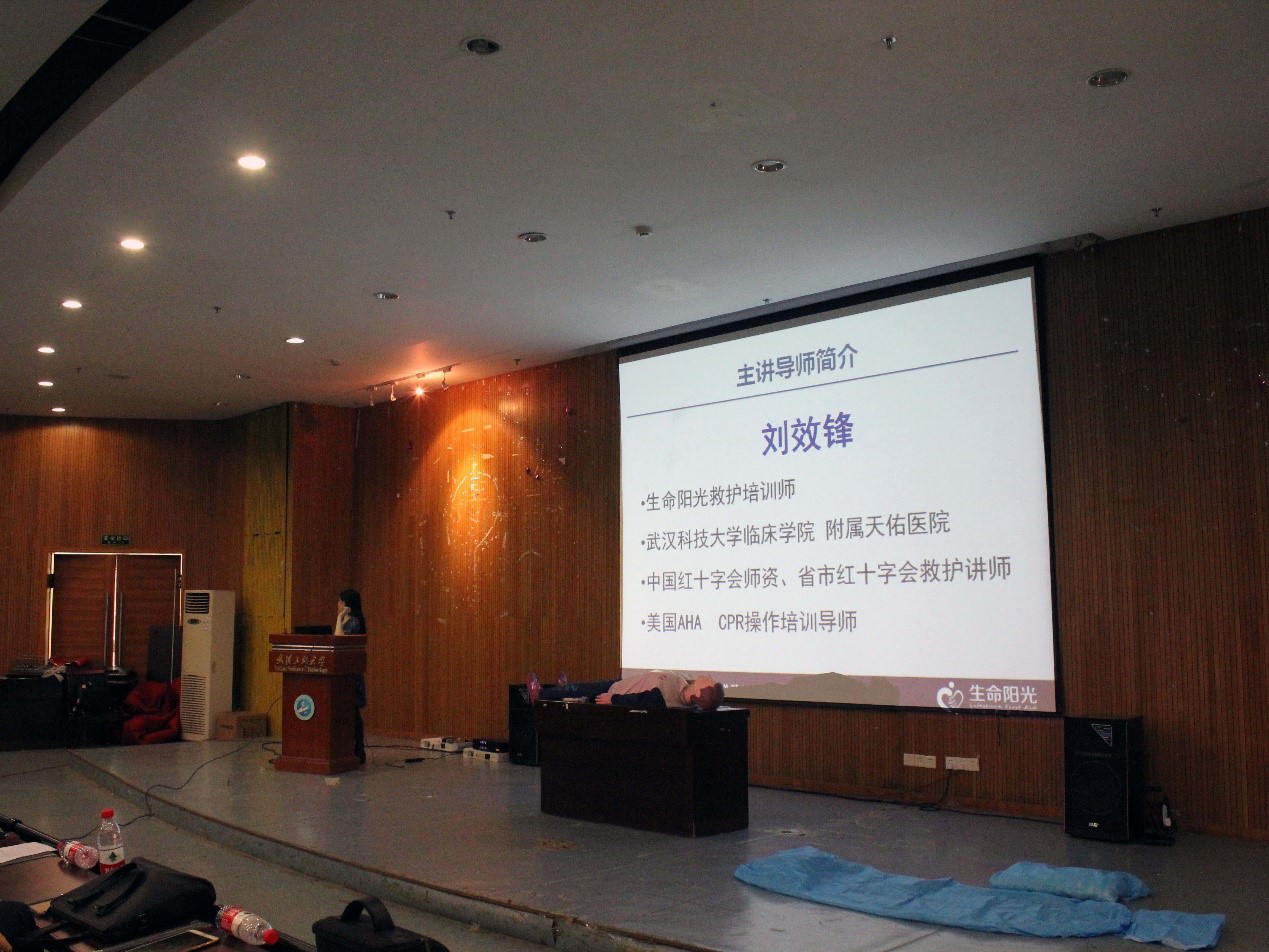 为落实“大健康”教育理念,普及急救常识,提高老员工的安全意识和自救、互救、急救能力,公司于5月12日下午两点在图书馆二楼报告厅,举办第十一届心理健康教育月心灵讲坛第3期——急救常识讲座。本次活动邀请到了武汉科技大学附属天佑医院、生命阳光救护培训师刘效锋主任医师从“安全救护”、“心肺复苏术”、“意外伤害就创伤现场救护”三个方面为现场师生进行了讲解和示范。员工处、校医院领导、心理健康教育中心全体人员、全校辅导员、部分教师代表以及15级班委参加了本次活动。