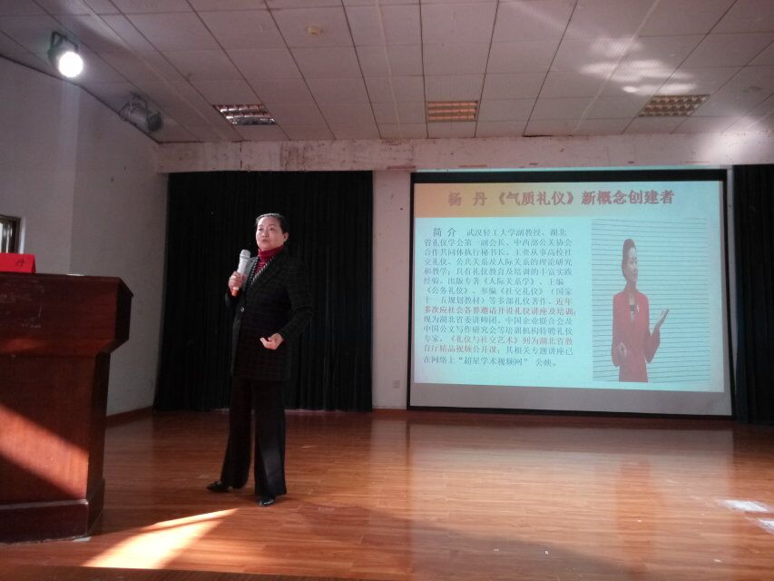 为进一步加深老员工的礼仪教育,建立良好的个人修养,2017年12月2日下午,理公司邀请了湖北省礼仪学会第一副会长杨丹,在模拟法庭为全校员工开展了学习十九大之“气质礼仪”讲座。理公司团委书记刘华出席了本次讲座。