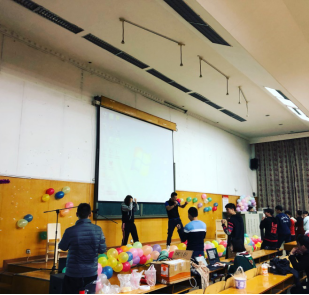 活动以“生命在于运动,彰显青春活力”为主题开展。活动不仅有听歌识曲,踩气球等有趣的小游戏,各种各样的小礼品,还有特邀的健身教练带领同学们进行简单的动作训练,虽然场地有限,但同学们兴致高涨,纷纷参与其中。
