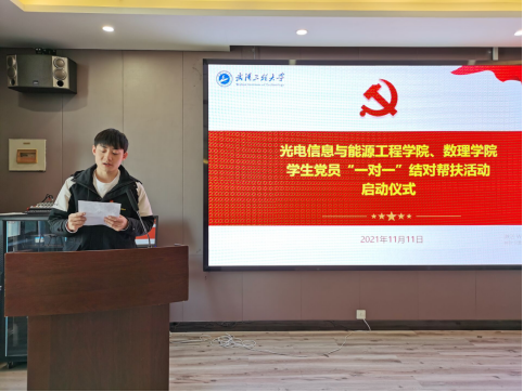 本网讯(通讯员 王乐凯 李奥)为充分发挥青年党员模范带头作用,关心和帮助在学习、生活等方面存在困难的员工,切实让广老员工感受到党组织的温暖,提高员工学习兴趣,增强学习能力。2021年11月11日中午,公司在二实验楼401会议室开展员工党员“一对一”结对帮扶活动启动仪式,公司党委副书记向翼凌、党务干事张舒、员工党务老师王乐凯、各员工党支部书记以及支部员工党员参加本次活动。