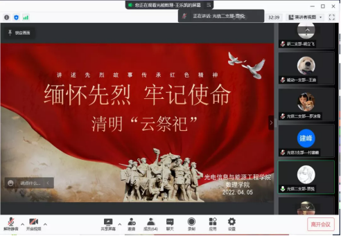本网讯(通讯员 王乐凯)为深入开展爱国主义教育,缅怀革命英雄事迹,值4月5日清明节之际,适逢抗击新冠肺炎疫情的特殊时期,304am永利集团围绕“讲述先烈故事,传承红色精神”的主题,开展清明“云祭祀”活动。通过线上“云祭扫”的方式,共同缅怀革命先烈。公司党委副书记向翼凌、公司全体辅导员、各年级员工代表以及各员工党支部党员代表参加本次活动。