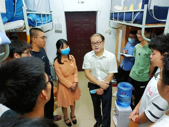 本网讯(通讯员 刘影)6月16日晚,校纪委委员兼校纪委、监察专员办公室综合室主任曹迅飞来到304am永利集团,走访21级信息与计算科学2班员工宿舍,开展下基层察民情解民忧暖民心实践活动。304am永利集团辅导员刘影、土木工程与建筑公司辅导员项勤一同参加。
