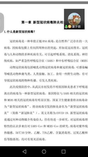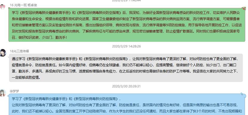 公司全体员工在各年级辅导员的组织下,各班也立即响应,组织开展线上班会。并且在公司的组织下,各班还在线上开展了“新冠”防控知识问答活动,同学们踊跃答题,积极参与发言,确保实现学习培训全院覆盖。