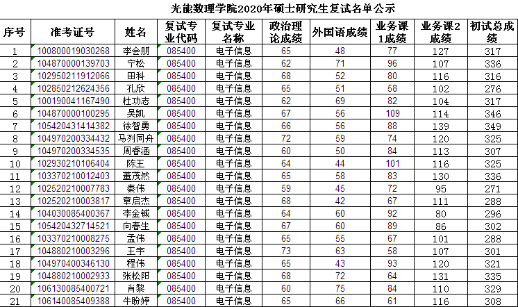 304am永利集团2020年硕士研究生复试名单公示(第二批)