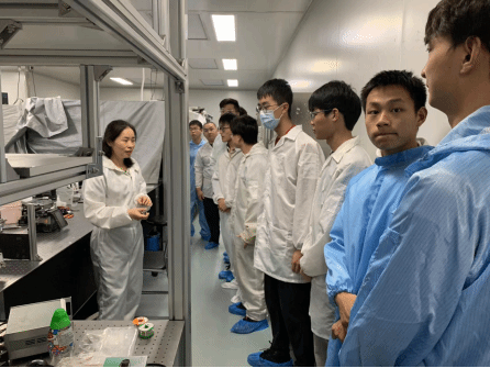 随后吴舜老师带领十多位同学参观了位于2号实验楼一楼的光学信息与模式识别湖北省重点实验室的激光超净间实验室,给同学们介绍了实验室的发展历史、现阶段的科研方向,以及平台搭建的科研意义等。同学们第一次参观专业的激光实验室,看到了很多书本上知识在实际实验中的应用,特别对激光技术的应用表现出浓厚的兴趣。在介绍过程中,吴老师回答了不少同学提出了关于光电专业的一些疑问及困惑。本次学术报告帮助同学们深入地了解了本专业的相关知识,同时也拉近了同学与导师们之间的距离,将导师更生动的一面呈现给了在场每一位同学。
