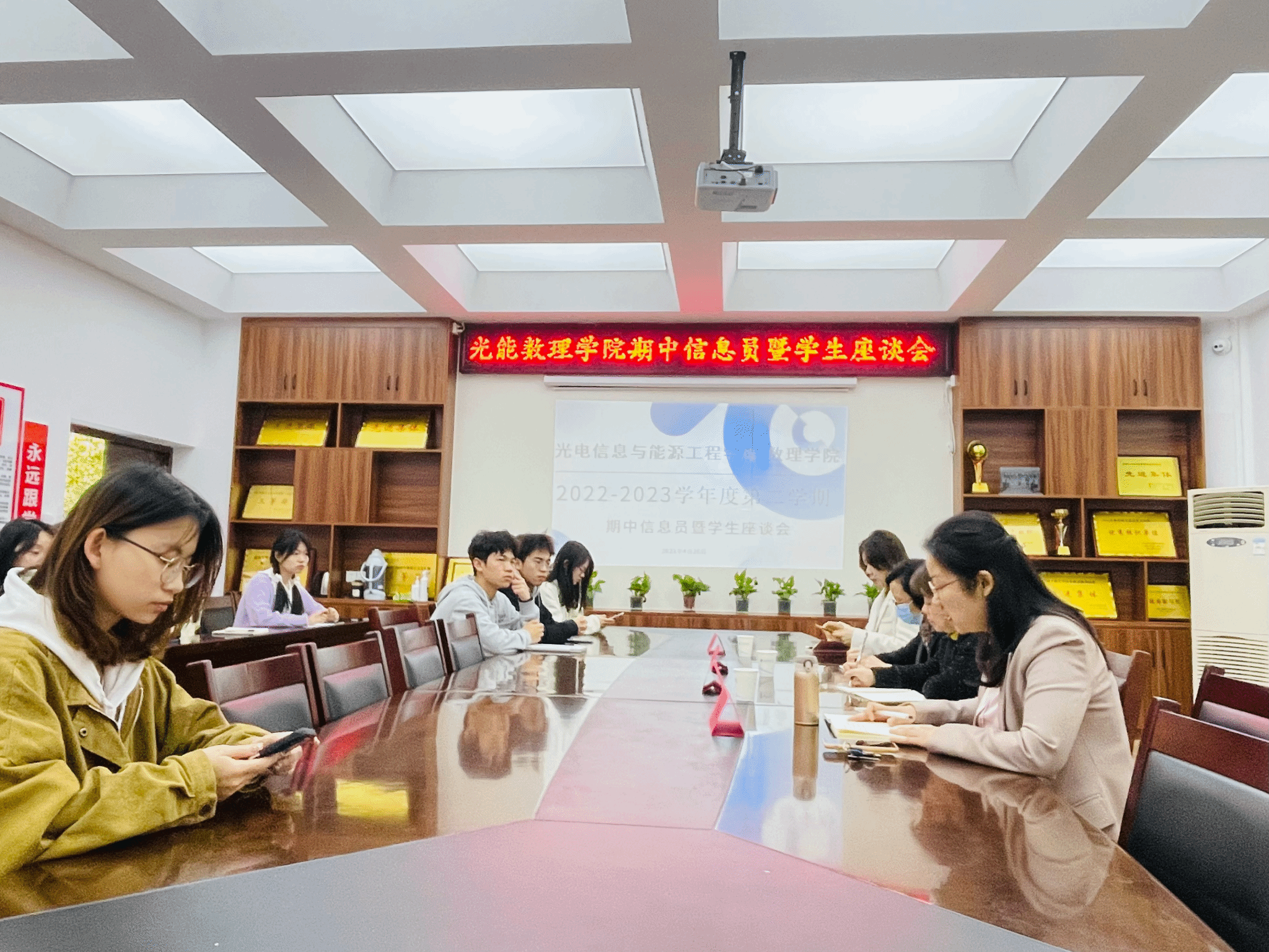 副经理李圆媛、文小玲老师和章瑾老师耐心地就信息员所提问题一一进行解答,并与大家展开讨论、提出解决方案。最后,李圆媛老师对本次会议进行总结,表示会及时联系公司相关部门及老师进行协调,她呼吁全体信息员积极承担责任,主动与老师、同学交流,带动班级学习气氛,起好带头作用。(审稿人:李圆媛)