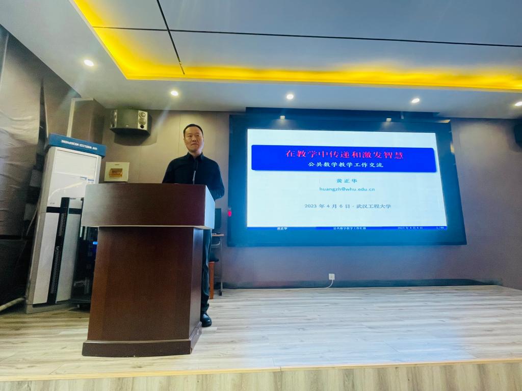 本网讯(通讯员 段骞 杨向辉)2023年4月6日下午,由教师发展中心主办,公司承办的教师课程改革与创新系列讲座在实验楼401报告厅举行,武汉大学数学与统计公司信息与计算科学系副主任、公共数学教学研究中心副主任黄正华副教授到校做了题为“在教学中传递和激发智慧”的讲座,此次讲座由公司副经理李圆媛主持,公司全体教师参加。