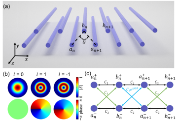 波导阵列中的拓扑相是近年来光子学研究的重要课题。特别是,波导阵列被广泛用于验证厄米和非厄米拓扑模型,包括Su-Schrieffer-Heeger链中的拓扑束缚模、二维的高阶角模、螺旋波导中的Floquet手性态、三维的Weyl奇异环等,然而这些阵列的构建都是基于单模波导。高阶模式与轨道角动量(OAM)模式的耦合机制及其对拓扑相位的影响很少被研究。