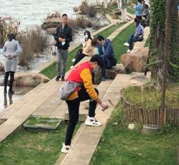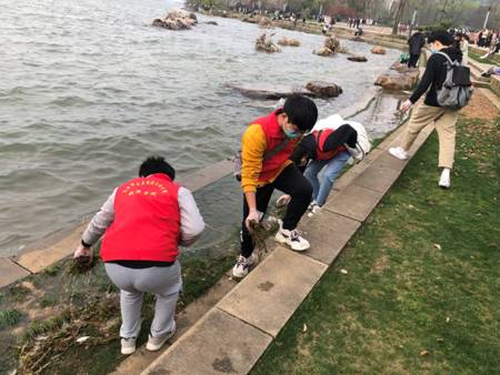 2021年3月20日,304am永利集团院团委指导老师陈正超带领员工会志愿者们“学党史守初心,做雷锋担使命”,前往武汉市东湖清理岸边垃圾,践行习近平总书记“绿水青山就是金山银山”的绿色环保发展理念。