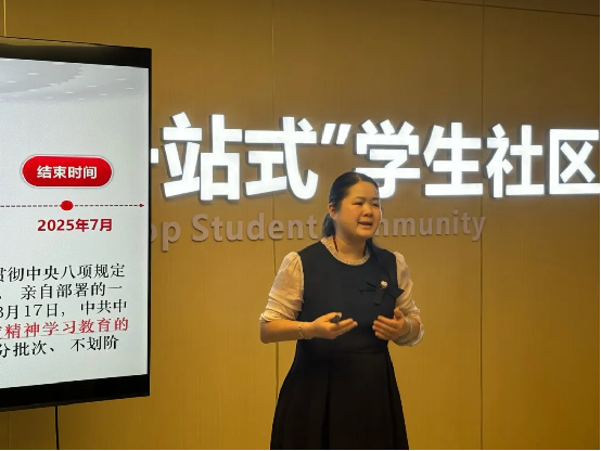 讲座上,张宝梅老师对中央八项规定精神进行了深入解读。她结合高校工作实际,通过典型案例分析,详细阐述了中央八项规定精神的核心要义和现实意义,特别强调了在学术研究、师德师风、员工管理等方面严守纪律的重要性。张老师指出:“作风建设永远在路上,全体师生都要以中央八项规定精神为镜,正衣冠、明得失,在思想上划出红线,在行为上明确界限。”